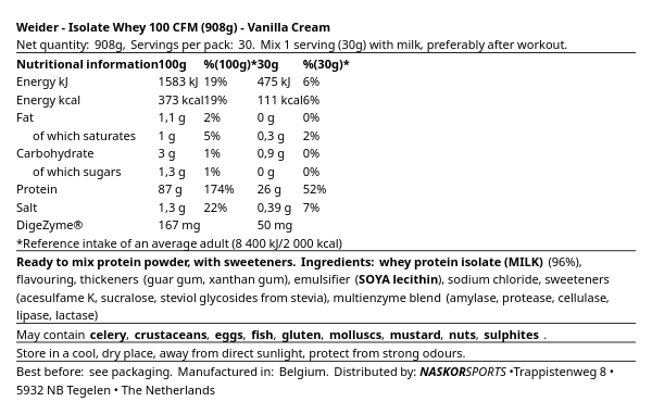 ährwertangaben für "WEIDER® CFM Whey Protein"